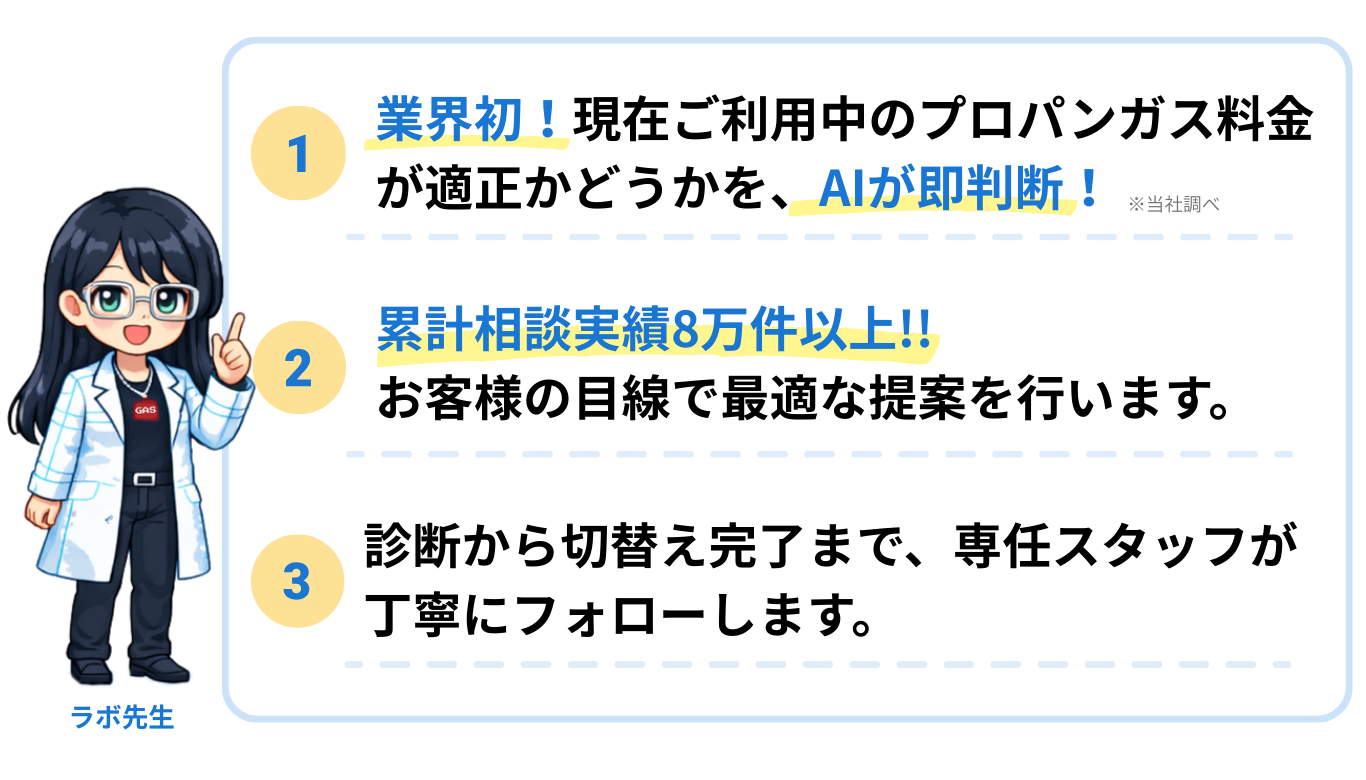 ラボ先生いいえ、実はプロパンガスには、全国共通の料金表が存在しないの。